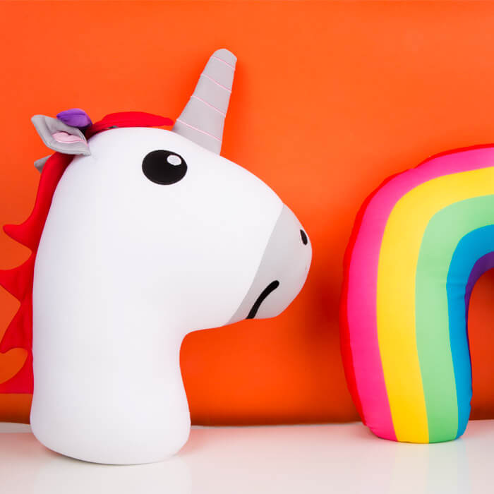 - Einhornkissen, das sich in ein Regenbogen-Reisekissen verwandelt